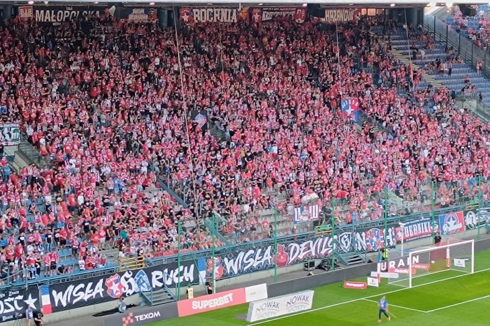 W poniedziałkowy wieczór na trybunach zasiadło ponad 22 tysiące widzów. Najzagorzalsi fani Białej Gwiazdy tradycyjnie zajęli trybunę wschodnią. Tymczasem naprzeciwko, podobnie jak to miało miejsce przy okazji meczu pucharowego Wisły z Widzewem Łódź, umiejscowieni zostali kibice 14-krotnego mistrza Polski. Start rywalizacji zaczął się od odśpiewania hymnów obu klubów przez fanów. Najpierw było znane: „Jak długo na Wawelu”. Z kolei chwilę później można było usłyszeć: „Ruchu nasz kochany”. Można mówić długo o tym, że fani Liverpoolu robią klimat, śpiewając hymn: „You’ll Never Walk Alone”. Niemniej polskie hymny też robią świetną atmosferę i nie można o tym zapominać.