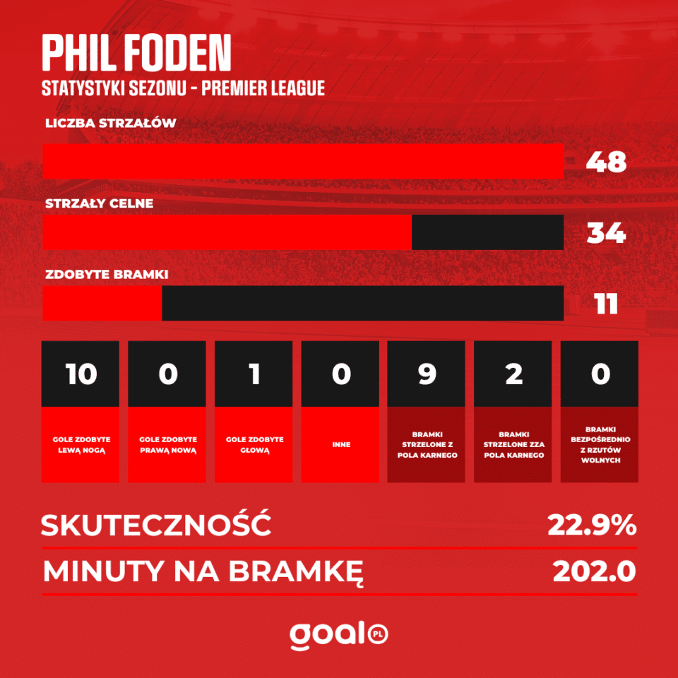 Jeśli spojrzymy na statystyki Fodena ze wszystkich rozgrywek łącznie to wyglądają one jeszcze bardziej imponująco: 18 goli i dziesięć asyst. Anglik jest jednym z bardziej wyróżniających się zawodników Manchesteru City.