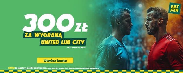 W tym miejscu warto zwrócić uwagę na specjalną ofertę Betfana. Bukmacher oferuje aż 300 zł bonusu za wytypowanie zwycięstwa Man City lub Man Utd w sobotnim spotkaniu. Z oferty można skorzystać podając podczas rejestracji w Betfan kod promocyjny GOAL.