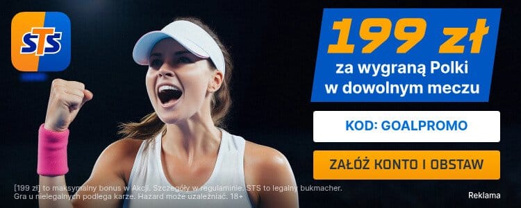 W STS można skorzystać ze specjalnej promocji, dzięki której za wytypowanie wygranej Świątek w czwartkowym meczu możemy odebrać bonus 199 zł. Z oferty można skorzystać rejestrują konto z kodem GOALPROMO. Poniżej wyjaśniamy krok po kroku co trzeba zrobić.