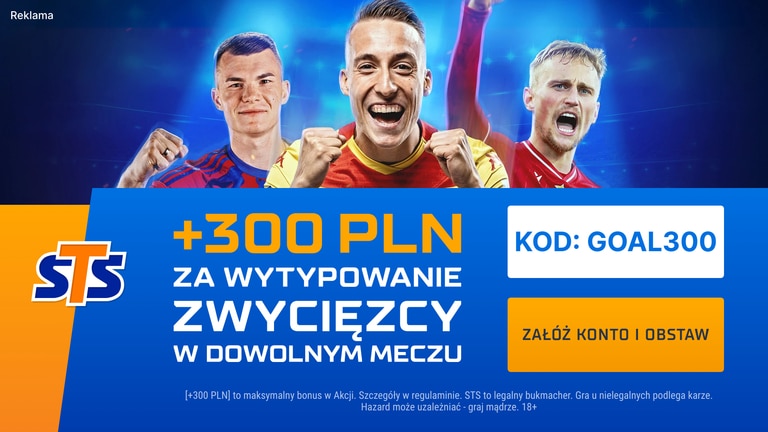 300 zł bonusu od STS za typ na zwycięzcę dowolnego meczu Ekstraklasy