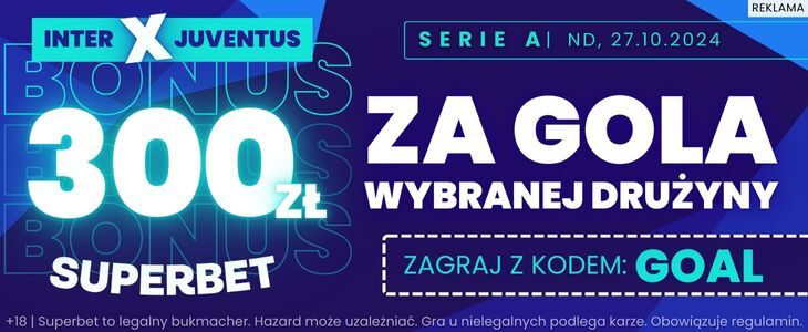 Bonus 300 zł za bramkę Interu lub Juventusu