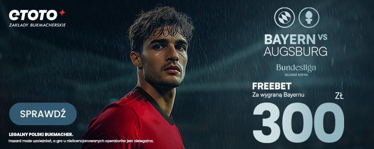 300 zł bonusu od ETOTO za wygraną Bayernu Monachium z Augsburgiem