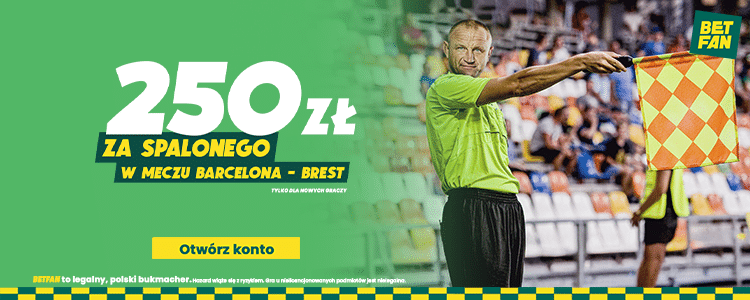• 250 zł za co najmniej jednego spalonego w tym spotkaniu oferuje Betfan
