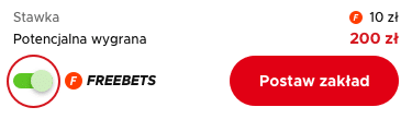 Aby skorzystać z freebetu, musisz aktywować swoje konto bonusowe. Zrobisz to za pomocą specjalnego suwaka, który znajdziesz na swoim kuponie, przed postawieniem zakładu. Minimalny kurs przy zakładach z freebetem to 2,14.