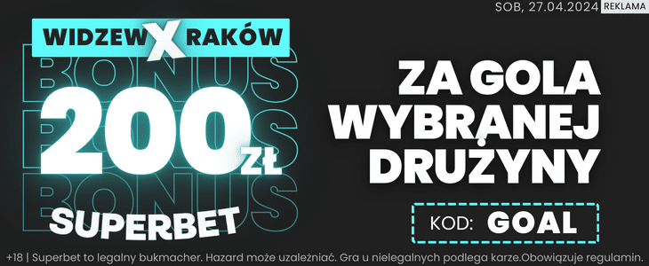 Bukmacher Superbet doskonale rozumie emocje, które towarzyszą PKO Ekstraklasie. W związku z tym operator zdecydował się zaproponować bonus 200 zł za wytypowanie drużyny z golem w spotkaniu Widzew – Raków.