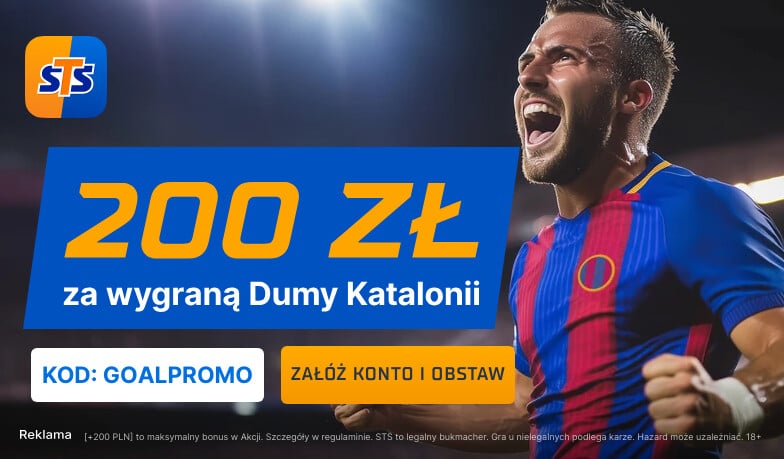 Bukmacher STS przygotował interesującą promocję z okazji meczu Celta Vigo – FC Barcelona w 14. kolejce La Liga. To 200 złotych bonusu za poprawny typ na zwycięzcę wspomnianego pojedynku. Możesz zapisać się do akcji, zakładając konto w STS ze specjalnym kodem promocyjnym GOALPROMO. Wpisz go do formularza rejestracyjnego bądź kliknij w poniższą grafikę, aby przejść do rejestracji z aktywnym kodem.