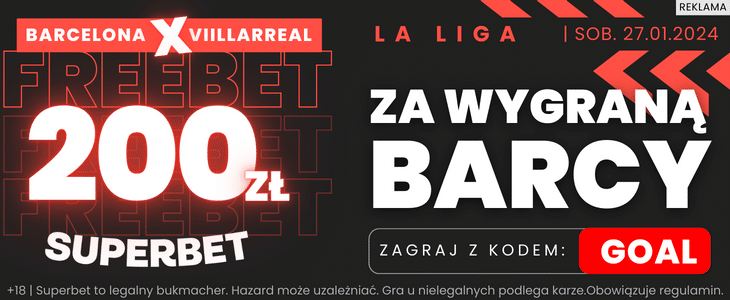 Freebet 200 zł w Superbet, jeśli FC Barcelona pokona Villarreal