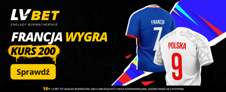 - Bukmacher LV BET oferuje kurs 200.00 na wygraną Francuzów, którzy są faworytem