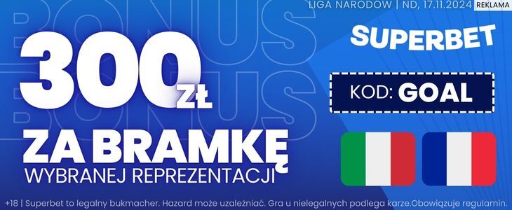 300 zł bonusu od Superbet za gola wybranej drużyny w meczu Włochy – Francja