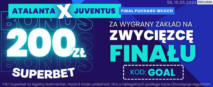 Atalanta Bergamo oraz Juventus powalczą w środę o Puchar Włoch. Finałowe starcie szykuje się niezwykle emocjonująco. Superbet oferuje kurs 100.00 na wskazanie zwycięzcy.