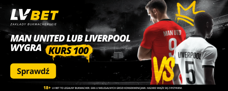 Promocja w LVBET z kursem 100.00 na zwycięstwo Man Utd lub Liberpoolu jest przeznaczona tylko dla nowych klientów tego bukmachera, którzy założyli konto z kodem GOAL. Zadaniem takich graczy jest jedynie wpłata 20 zł oraz postępowanie wedle ściśle określonych wytycznych.