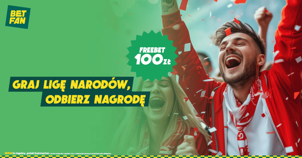BetFan proponuje nawet 100 złotych freebetu za typy na Ligę Narodów. Możesz skorzystać z tej promocji, obstawiając chociażby mecz Polska – Szkocja. Jakie są warunki? Wyślij kupon AKO za min. 100 złotych z kursem min. 3.00, a bez względu na jego rozstrzygnięcie, otrzymasz freebet o wartości 50% stawki. Możesz wysłać więcej kuponów i zgarnąć łącznie nawet 100 złotych.