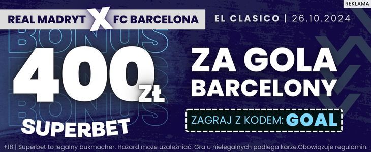 - Superbet oferuje aż 400 zł bonusu za trafienie FC Barcelony podczas rywalizacji z Królewskimi