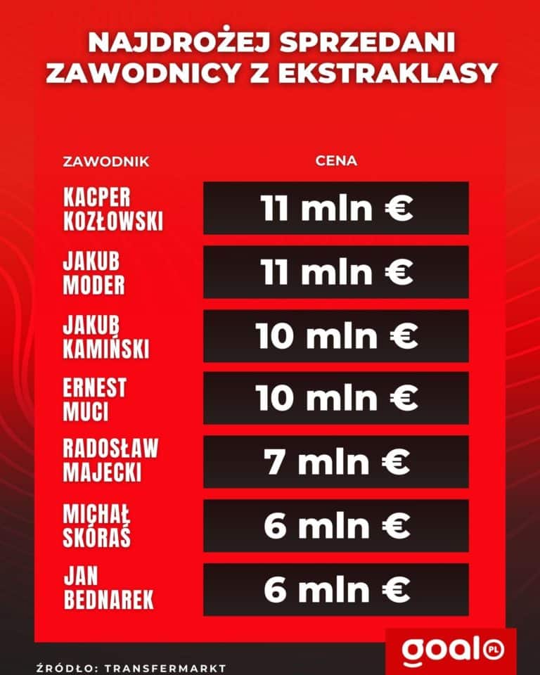 Muci wspiął się tym samym również na podium w klasyfikacji najdrożej sprzedanych zawodników z Ekstraklasy. Na pierwszych dwóch miejscach znajdują się Kacper Kozłowski oraz Jakub Moder, za którego kolejno Pogoń Szczecin i Lech Poznań zarobili po 11 milionów euro.