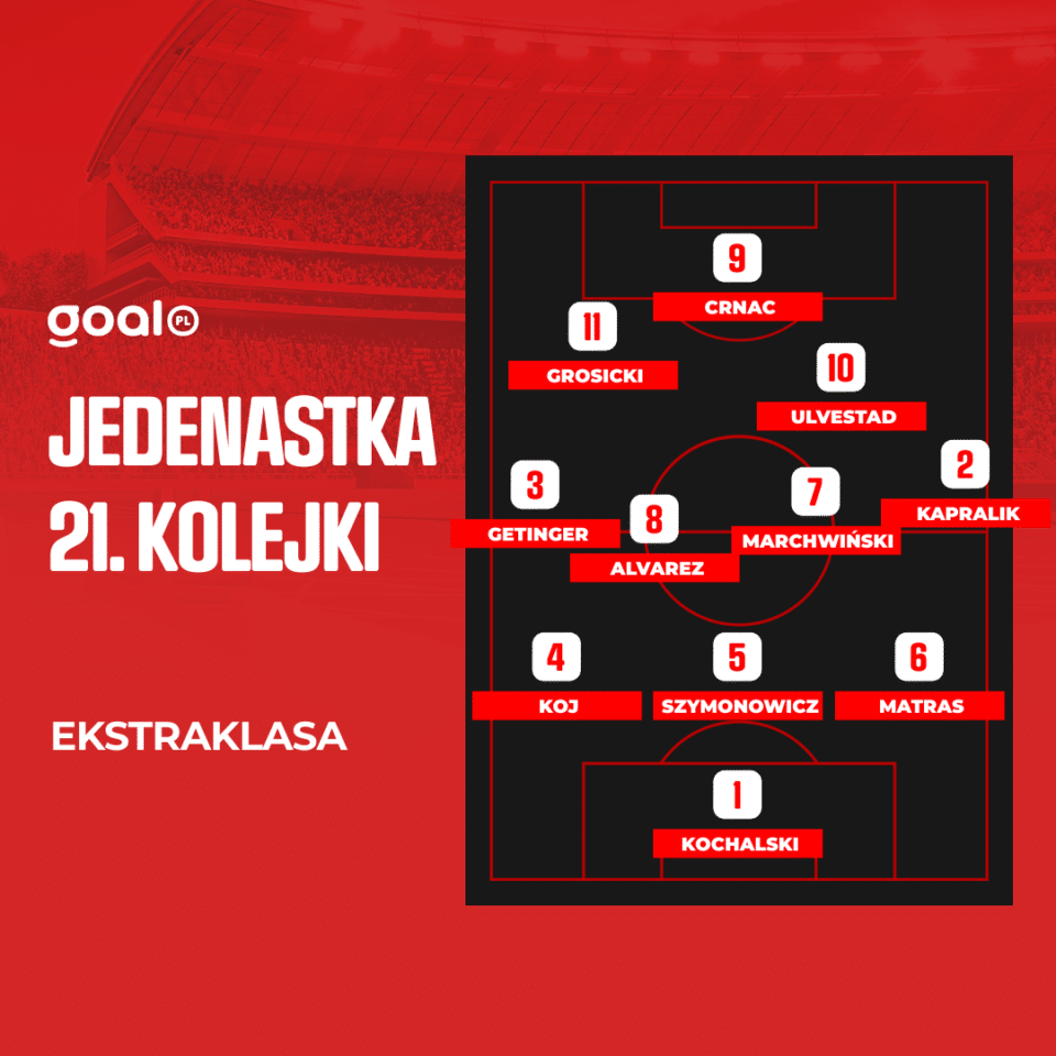 Największa rywalizacja była ponownie w bramce. Tutaj tak naprawdę czy wystawilibyśmy Bartosza Mrozka za mecz z Jagiellonią, czy Mateusza Kochalskiego za starcie ze Śląskiem Wrocław, to i tak by się obroniło. Obaj byli świetni, ale ostatecznie Kochalski za czyste konto wskakuje do jedenastki. Obrona? Szymonowicz i Matras za wrażenia defensywne (obaj na zero z tyłu), Koj za dorzuconą bramkę na wagę remisu.