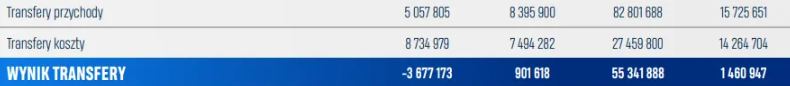 Kwota niemal 50 mln zł wpadnie do kategorii związanej z transferami, bo oficjalna data transferu Kuby Kamińskiego do VfL Wolfsburg to 1 lipca 2022 roku. Oznacza to, że cały przychód z tej transakcji zostanie zaksięgowany w sezonie 22/23, przy czym rzeczywiste wpłaty na konta Lecha zostaną dokonane w ratach. Jest to standardowa praktyka w tego typu transakcjach. Kolejorz upiera się na wpisywanie różnych bonusów, np. za powołanie na turniej MŚ lub ME, za liczbę występów w barwach nowego klubu lub procentowy udział w zysku z kolejnego transferu zawodnika, więc wpływy związane z Kamińskim możemy widzieć w kilku kolejnych rachunkach zysków i strat klubu.