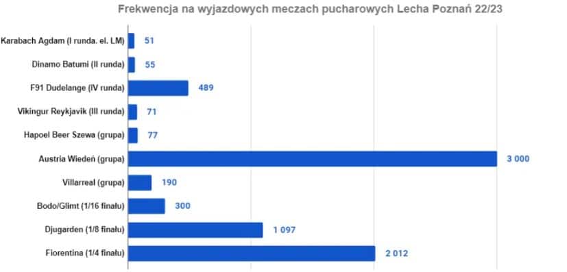 Wiemy także o kosztach związanych z wyjazdami na mecze w pucharach, które przekroczą wartość 8-9 mln zł. W klubie wyliczono, że 7 meczów w części rozgrywek zakończonej w 2022 roku pochłonęło 6.5 mln zł. Wiosną Lech odbył 3 delegacje: do norweskiego Bodo, szwedzkiego Sztokholmu i włoskiej Florencji. Koszty podróży europejskich Lecha w porównaniu do sezonu 20/21 wzrosły o około 50%.