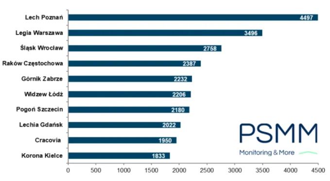 Od lat firma Press Service Monitoring & More (z siedzibą w Poznaniu) przygotowuje zestawienie medialności polskich piłkarzy i klubów piłkarskich. Raporty opierają się na liczeniu wzmianek o danej osobie, bądź klubie w przestrzeni publicznej. Zazwyczaj pozycję lidera w poszczególnych miesiącach zajmuje Legia Warszawa, ale w ostatnim sezonie najbardziej medialnym klubem Ekstraklasy był Lech Poznań.