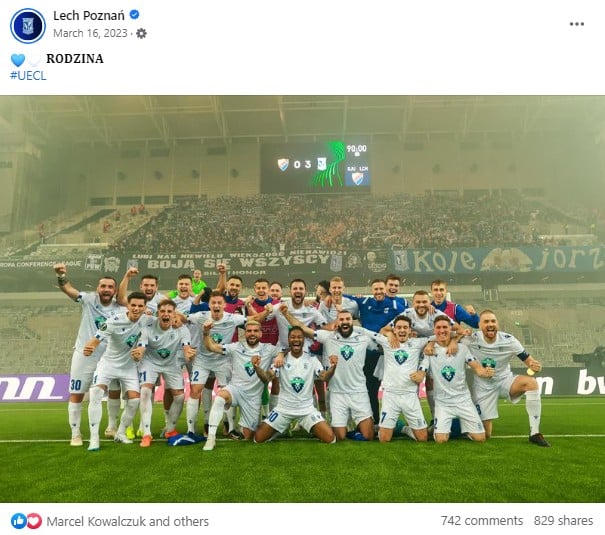 Największe zainteresowanie w ubiegłym roku wzbudził post Lecha Poznań, na którym widzimy drużynę Kolejorza po wyjazdowym zwycięstwie nad Djurgarden w 1/8 finału Ligi Konferencji Europy. Zdjęcie polubiło ponad 23 tys. osób, a ponad 1.5 tys. go skomentowało lub udostępniło.