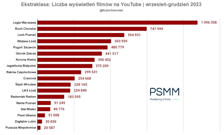 Jedynie cztery filmy wygenerowały ponad 100 tys. wyświetleń, z czego aż trzy opublikowała Legia. Czwarty pochodzi z kanału Ruchu Chorzów.