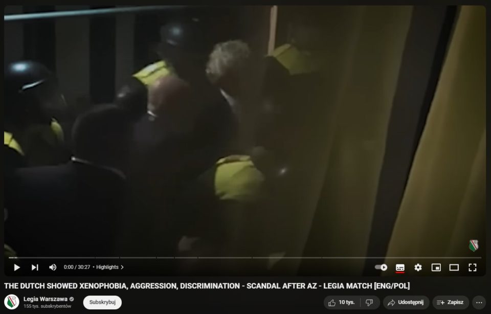 Filmem, który wygenerował największą liczbę wyświetleń (460 tys.) jest nagranie opublikowane przez Legię Warszawa, w którym pokazywane są skandaliczne zachowania po meczu przeciwko AZ Alkmaar. Widać na nim m.in., jak prezes i właściciel klubu z Warszawy został poturbowany przez służby porządkowe. Odpowiada za prawie połowę wyświetleń klubowego kanału w analizowanym okresie.