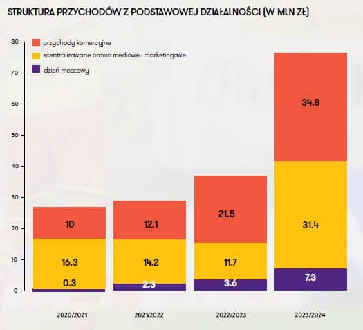 - 72.8 mln zł przychodów komercyjnych (1. miejsce w lidze),