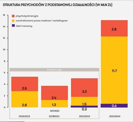 - 15% przychodów z praw telewizyjnych całej Ekstraklasy.