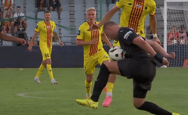 Rzutu karnego nie było też w starciu Motoru ze Stalą, gdy Getinger w sposób oczywisty popycha składającego się do strzału N’Diaye. Ten aż porfunął, bo został pchnięty przy niestabilnej pozycji, a Getinger w sposób oczywisty wpłynął na jakość oddanego uderzenia.