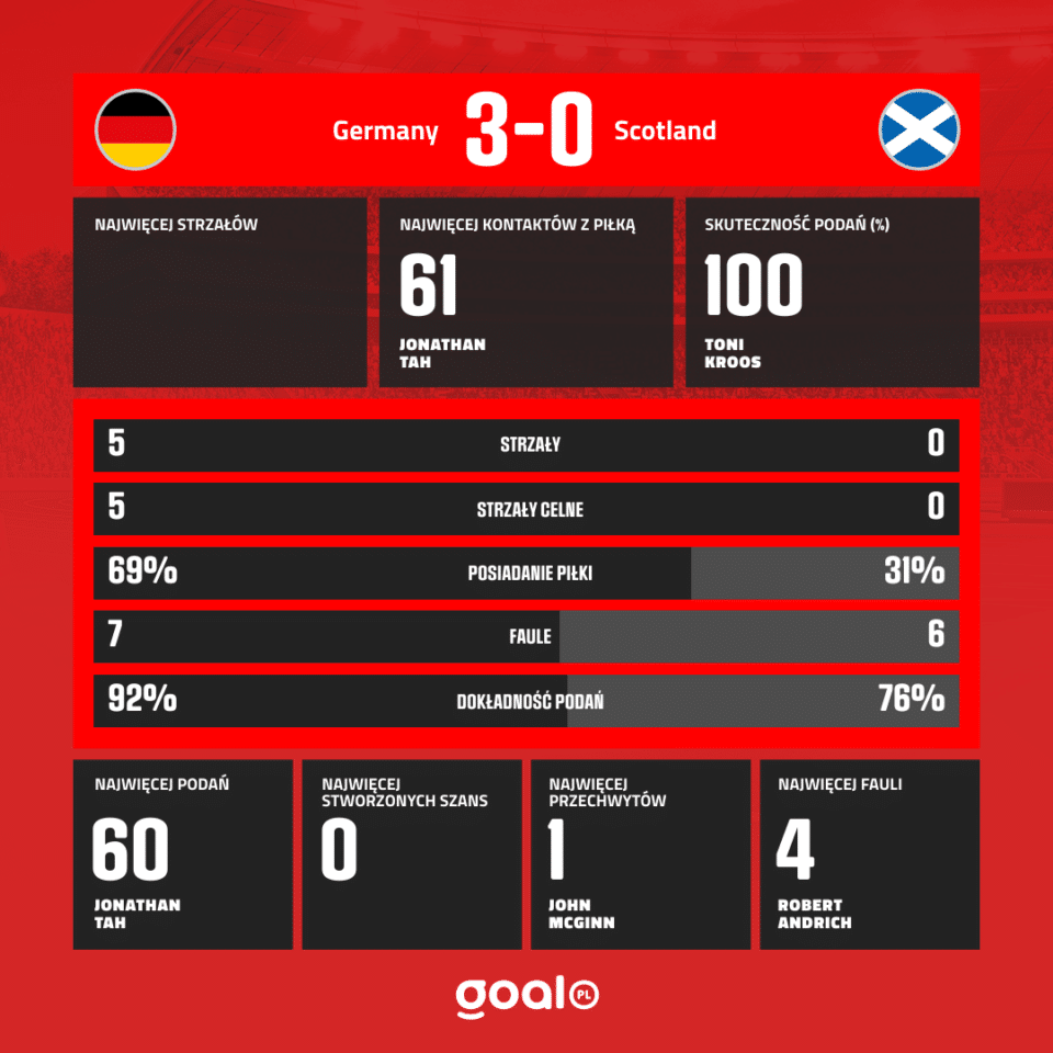 Dominacja Niemców ma swoje potwierdzenie nie tylko w wyniku, ale również statystykach.
