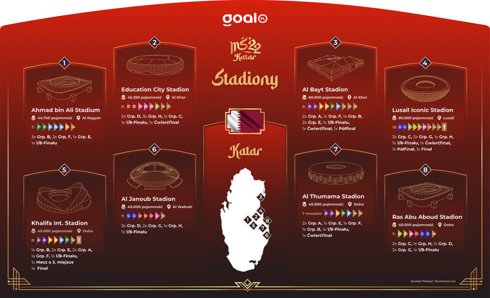 Podczas Mistrzostw Świata w Katarze 32 zespoły swoje mecze będą rozgrywały łącznie na ośmiu obiektach. Większość z nich została wybudowana w dość ekspresowym tempie specjalnie na okazję prestiżowego turnieju. Każdy z nich może pomieścić przynajmniej 40 tysięcy kibiców, a niektóre jeszcze więcej. Oto lista aren, które ugoszczą uczestników mundialu: