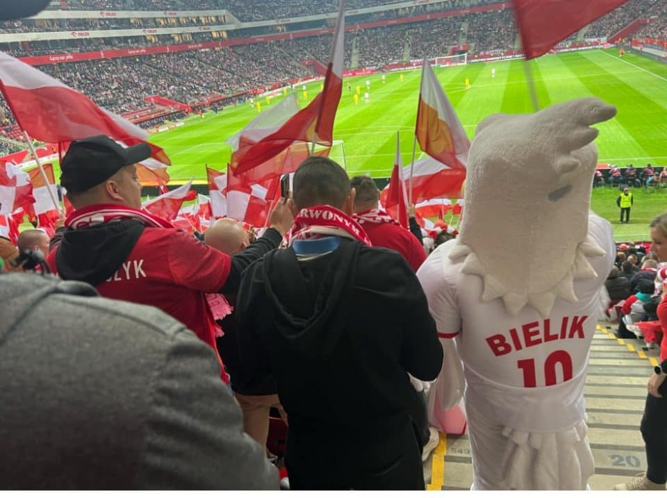 Większego planu na prowadzenie dopingu nie było. – Plan jest taki, żeby rozgrzać ten niesamowity Stadion Narodowy. Nie mamy jakiegoś szczegółowego planu – zobaczy, co „siądzie”. Ekipa z D15 wcześniej w pubie zaznajomiła się z naszymi przyśpiewkami i mam nadzieję, że jakoś to będzie wyglądało – mówił mi Mariusz, bębniarz ze stowarzyszenia odpowiedzialnego za porwanie tłumów.