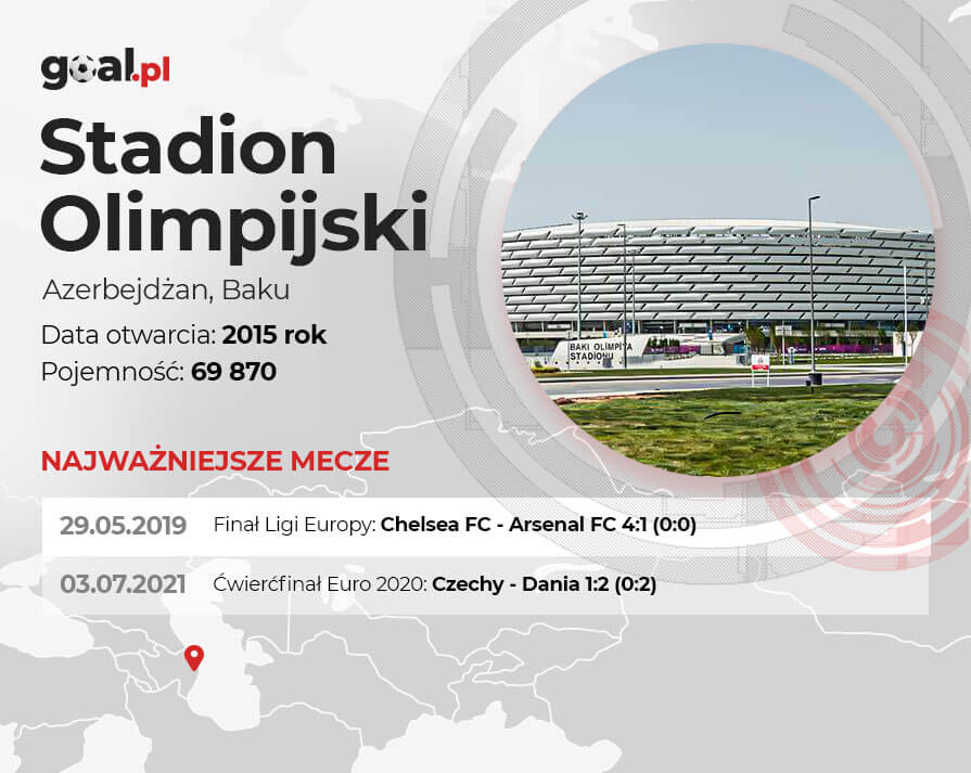 Stadion Olimpijski w Baku był jedną z aren Euro 2020, choć tak naprawdę nie znajduje się w Europie. Na jego trybunach może zasiąść maksymalnie 68 700 tys. widzów. Azerbejdżan to obok Rumunii kraj, który nie miał swojej reprezentacji na Euro 2020, ale znalazł się wśród organizatorów turnieju. Na Stadionie Olimpijskim w Baku jak dotąd nigdy nie grała reprezentacja Polski.