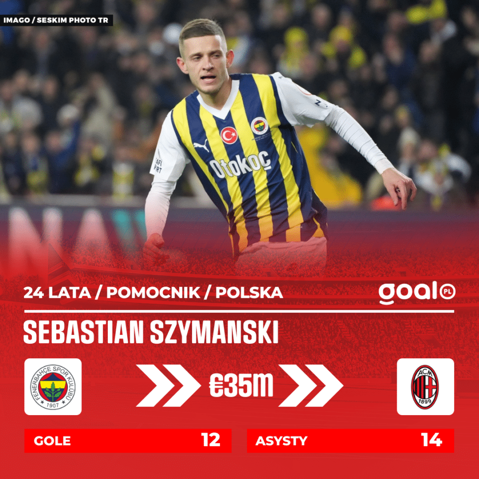 Jednym z najbardziej rozchwytywanych polskich piłkarzy w tym momencie bez wątpienia jest Sebastian Szymański. 24-letni pomocnik rozgrywa fantastyczną kampanię w barwach Fenerbahce Stambuł – na przestrzeni obecnego sezonu rozegrał 40 meczów, strzelił 12 bramek i zanotował 14 asyst. Jego klub walczy o mistrzostwo Turcji, które może wygrać po raz pierwszy od kampanii 2013/2014.