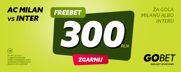 Aż 300 zł bonusu w postaci freebetu można zgarnąć w GOBET typując gola dla wybranej przez siebie drużyny Milan – Inter. Z oferty można skorzystać zakładając konto z kodem promocyjnym GOAL. Poniżej krok po kroku wyjaśniamy jak skorzystać z oferty.