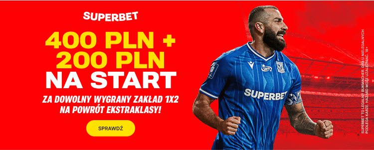 Superbet przygotował specjalną ofertę na pierwszą wiosenną kolejkę Ekstraklasy. Oferuje możliwość postawienia zakładu na zwycięzcę dowolnego meczu lub remis po kursie 200. Dzięki niej można zgarnąć dodatkowy bonus o wartości 400 zł. Jak skorzystać z promocji?