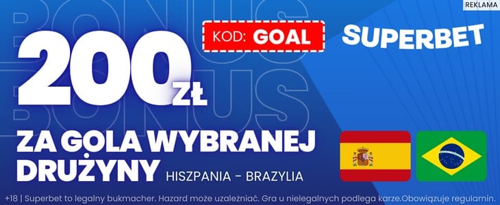 Bonus 200 zł za gola Hiszpanii lub Brazylii