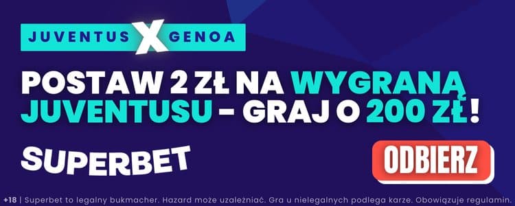 - Zagraj za min. 2 zł pierwszy zakład pojedynczy na wygraną Juventusu w meczu z Genoą