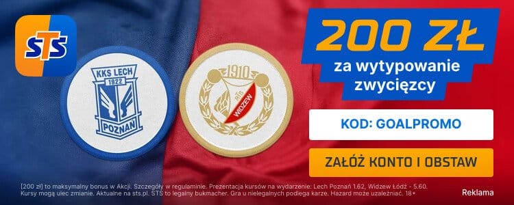 W STS możesz zgarnąć 200 zł bonusu, jeżeli poprawnie wytypujesz zwycięzcę meczu Lech Poznań – Widzew Łódź. Z oferty można skorzystać zakładając konto z kodem promocyjnym GOALPROMO. Poniżej krok po kroku wyjaśniamy zasady opisywanej promocji.