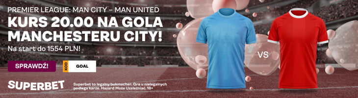 Bukmacher Superbet z okazji derbów Manchesteru przygotował bardzo atrakcyjną promocję, dzięki której można postawić na przynajmniej jednego gola dla City po niesamowitym kursie 20.00! Warunki tej promocji są bardzo proste. Poniżej przedstawiamy co trzeba zrobić, aby z niej skorzystąć.