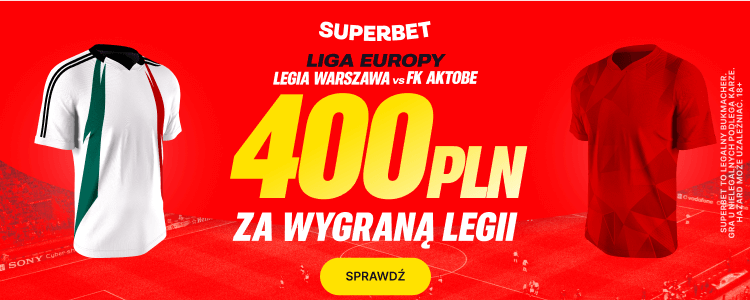 W Superbet zakład na wygraną Legii w specjalnej promocji można teraz postawić po kursie 200.00. W przypadku powodzenia będziesz mógł odebrać bonus o wartości 400 zł. Co trzeba zrobić?
