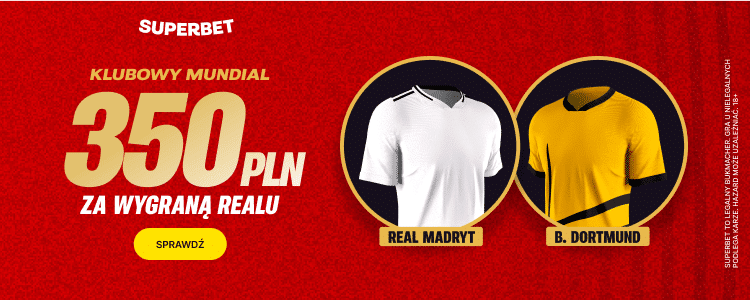 Bardzo atrakcyjna promocja czeka na osoby, które zarejestrują konto w Superbet podając kod promocyjny GOAL. Spełniając ten warunek będą mogły postawić zakład na wygraną Realu Madryt w ćwierćfinałowym meczu po kursie 175.00 i zgarnąć nawet 350 zł bonusu. Poniżej krok po kroku wyjaśniamy jak skorzystać z promocji.