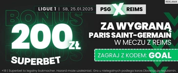 W Superbet możesz również skorzysta z bardzo ciekawej promocji i zakład na zwycięstwo PSG postawić po kursie 100. Stawiając tylko 2 zł można otrzymać dzięki tej ofercie bonus 200 zł. Jak z niej skorzystać?