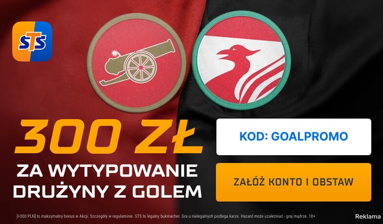 Załóż konto na STS, używając kodu promocyjnego GOALPROMO, aby odebrać bonus związany z meczem Arsenal – Liverpool. Zaakceptuj wymagane zgody marketingowe i dokonaj pierwszego depozytu w wysokości co najmniej 50 zł. Następnie postaw kupon typu SOLO lub AKO na to spotkanie, typując zdarzenie związane z golem jednej z drużyn – Arsenalu lub Liverpoolu. Minimalna stawka kuponu wynosi 2 zł, a spełnienie tych warunków pozwoli na pełne wykorzystanie oferty promocyjnej.