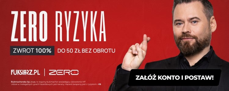 Przy okazji tego meczu zwracamy uwagę na ciekawą ofertę Fuksiarza. Bukmacher oferuje postawienie zakładu bez ryzyka 100% do 50 zł. Co to oznacza? W przypadku niepowodzenia otrzymasz zwrot do 50 zł na konto główne. Z oferty można skorzystać rejestrując konto za pośrednictwem naszej strony oraz wpłacając depozytu o wartości minimum 50 zł. Objęty zakładem bez ryzyka zostanie zagrany za minimum 50 zł kupon AKO na którym każde zdarzenie będzie miało kurs min. 1.60.
