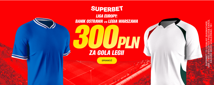 Według bukmacherów za nieznacznego faworyta czwartkowego spotkania uchodzą gospodarze, którzy będą mieli przewagę własnego boiska. Kurs na wygraną Banika Ostrawa wynosi około 2.35, typ na zwycięstwo Legii Warszawa to mniej więcej 3.00, natomiast współczynnik na remis jest szacowany w granicach 3.45. Zakładając konto w Superbet z kodem GOAL możesz skorzystać z najlepszego pakietu powitalnego.