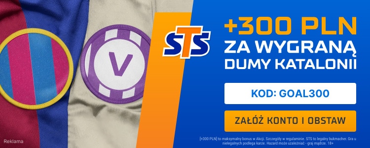 Co ciekawe, STS przygotował na mecz Barcy specjalną promocję. Rejestrując się z kodem GOAL300, można obstawić wygraną Dumy Katalonii po promocyjnym kursie 150.00.