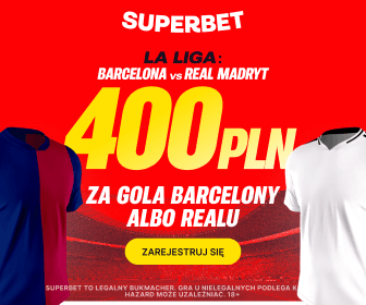 ![]() | Bonus 400 zł za gola Barcelony lub Realu z kodem GOAL | Postaw w Superbet! |