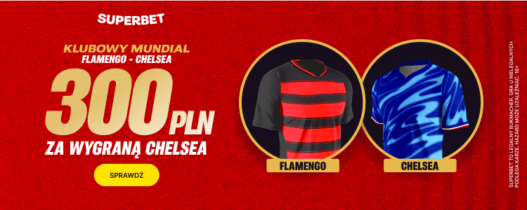 Aż 300 zł bonusu można zgarnąć dzięki promocji Superbet stawiając za 2 zł na wygraną Chelsea w meczu z Flamengo. Z takiej oferty można skorzystać zakładając konto z kodem promocyjnym GOAL. Poniżej krok po kroku wyjaśniamy co trzeba zrobić.