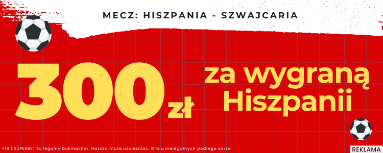 Bukmacherzy sugerują, że wyraźnym faworytem meczu są gospodarze. Kurs na wygraną Hiszpanii wynosi około 1.45, a współczynnik na zwycięstwo Szwajcarii to mniej więcej 6.70. Kurs na remis jest szacowany w granicach 4.60. Nasz kod do Superbet GOAL odblokowuje freebet na 35 zł.